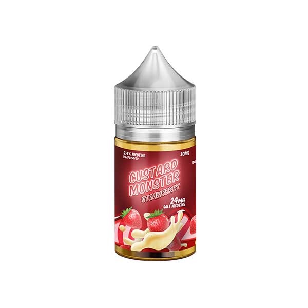 A dessert-style salt from Monster combining creamy vanilla custard with ripe strawberry in a silky 50/50 blend,Custard Monster Strawberry Salt Nicotine brings plush, flavorful clouds to vapers in Dubai and the UAE.