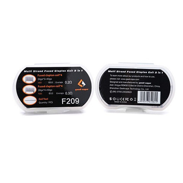 Geek Vape F209 0.2 Coil from Vapex UAE is a pack of ready-made, low-resistance Ni80 Multi Strand Fused Clapton coils. Ideal for RDA, RTA and RDTA setups, these coils promise better juice circulation, low residue and long life , sold individually with plastic packaging.