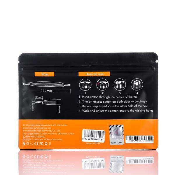 Presentation and practicality were clearly considered. The package contains multiple pre-cut strands that are uniform and neatly finished, with each strand sealed at both ends for easy handling during builds. Manufactured by GEEKVAPE with the cotton processed from Japanese plants, Feather Cotton aims to be a reliable everyday choice for rebuildable atomizers. It’s tailored to vapers who prefer ready-made, high-absorbency wicking material that saves prep time and delivers steady, clean performance in a variety of coil setups.