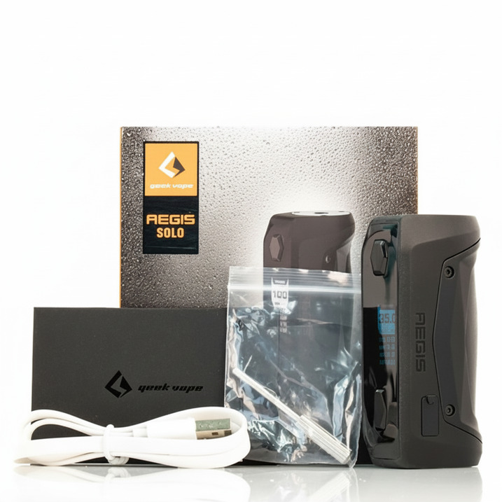 The Geekvape Aegis Solo MOD is a compact, IP67-rated 100W single-battery mod with AS-100 chipset, 0.91″ OLED screen, micro USB charging and a leather-aluminum body , a tough, stylish choice available at Vapex UAE.
