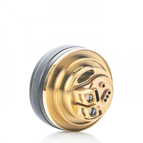 Start at the heart: the large 22mm build deck features two side‑by‑side posts with single terminals and flat head screws for easy wire clamping. The deck was designed for single‑coil builds and includes wide cotton slots on either side so wicking is simple and clean. Direct airflow is delivered under the coil through a central intake hole, and the deck includes a movable section that changes how that air arrives , letting you switch between three distinct inlet modes to suit tighter or looser MTL draws. Everything about the deck feels practical and robust, from the PEEK insulation to the roomy cotton channels that make maintenance and rewicking quick.