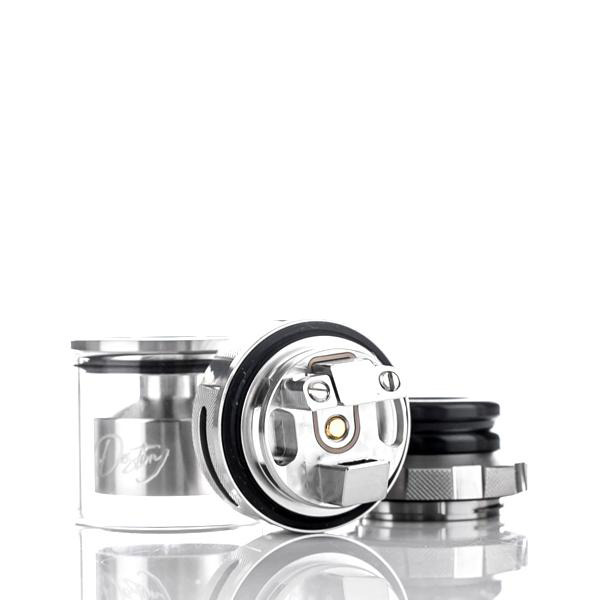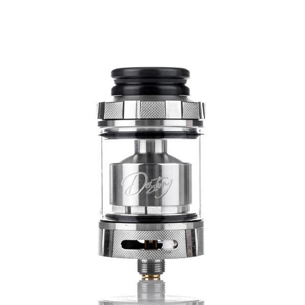 - Box contents: Destiny RTA, prebuilt 0.34 Ω coil, spare bubble glass, organic cotton, spare screws and O-rings, 510 drip tip adapter, user manual
