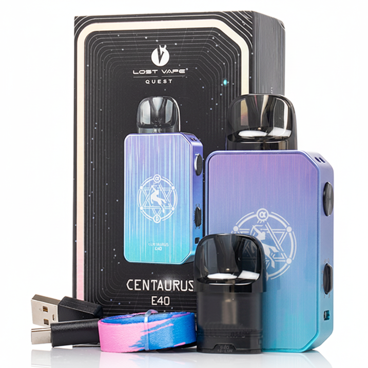 Lost Vape Centaurus E40 Kit lands as a refined pod mod that balances smart tech with hands-on control. Right away you notice the industrial design and RGB panel that give it a premium look and feel. The Centaurus E40 uses the Quest 2.0 chipset to keep readouts and protections crisp on its 0.42-inch OLED screen. What I love as a fan is the rotary wattage dial at the side , it lets you scroll smoothly through the 5–40W range so you can match output to taste. The kit comes with two E-Plus coils (0.3Ω and 0.6Ω) and a magnetic 3ml cartridge, so swapping between MTL and RDL is simple and satisfying. If you’re after a compact device that doesn’t skimp on options, this one checks a lot of boxes.