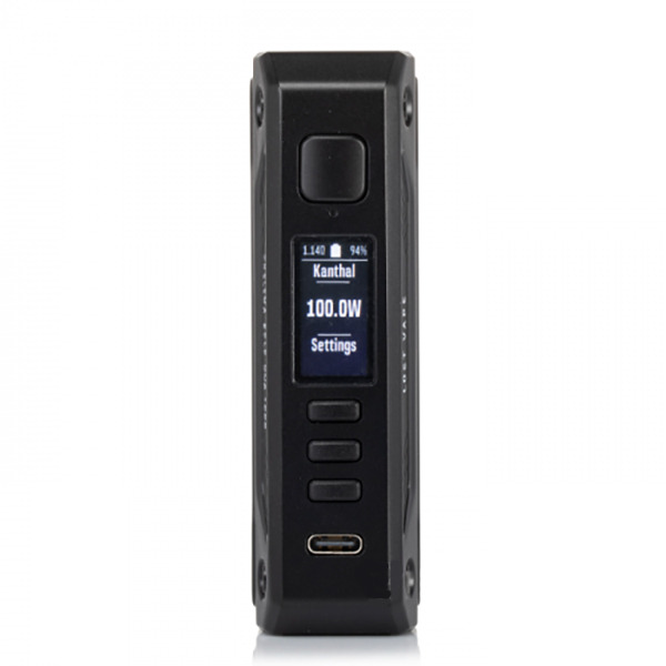 Built from a zinc and aluminium alloy, the Thelema Solo DNA100C pairs a sturdy feel with a compact footprint. The mod’s dimensions are listed as 97.5mm by 39mm by 28.5mm, and the chassis includes a magnetic sliding battery door for quick access. Controls are straightforward: a body‑mounted fire button, a single mode button and two adjustment buttons sit alongside a 0.9‑inch display that presents the DNA readout. The device connects to atomizers via a 510 connector, keeping compatibility with a wide range of tanks and RDAs. For vapers who value a solid, no‑nonsense build and the trusted DNA user experience, this Solo is a tidy package.
