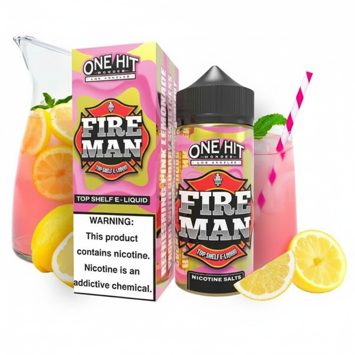 One Hit decided to use nicotine salts in this line, and Fire Man is produced with TruNic 2.0 salt nic to deliver a softer, more refined throat feel and a truer nicotine hit. The brand produces this flavour in nicotine strengths of 0, 3 and 6 mg depending on stock, and the production example highlights the 3 mg TruNic 2.0 salt used in the bottle description. For fans of salt formulations, that choice brings a smoother draw and lets the bright pink lemonade and candy notes remain the main event throughout your session in the UAE climate or beyond.", "p4": "As a fan‑favoured entry from One Hit Wonder, Fire Man reflects the brand’s focus on fruity and dessert‑leaning liquids made with premium ingredients and vaping‑grade flavouring. Made in the USA and handcrafted in Los Angeles, this juice is marketed as a generous 100ml option for vapers who like value without sacrificing taste. Vapex UAE recommends giving the bottle a good shake before use to blend the ingredients for the fullest aromatic and flavour profile,especially helpful if you’re enjoying this bright, lemony blend on warm Dubai afternoons."