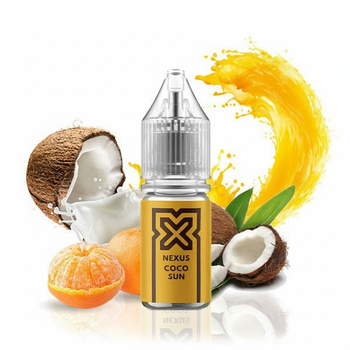 Nexus Coco Sun by Pod Salt is a 30ml salt nicotine juice blending creamy tropical coconut with bright tangerine, offered in 50/50 VG/PG and available in 25mg and 50mg strengths.