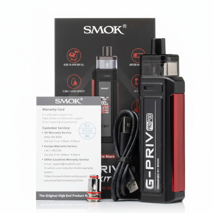 The SMOK G-Priv Pro Kit is a compact, well‑balanced pod‑mod from SMOK featuring a zinc‑alloy frame with a leather rear panel, side fire button, 5.5ml cartridge support and USB‑C charging , a great choice for vapers in Dubai and across the UAE who want solid build and easy customization.