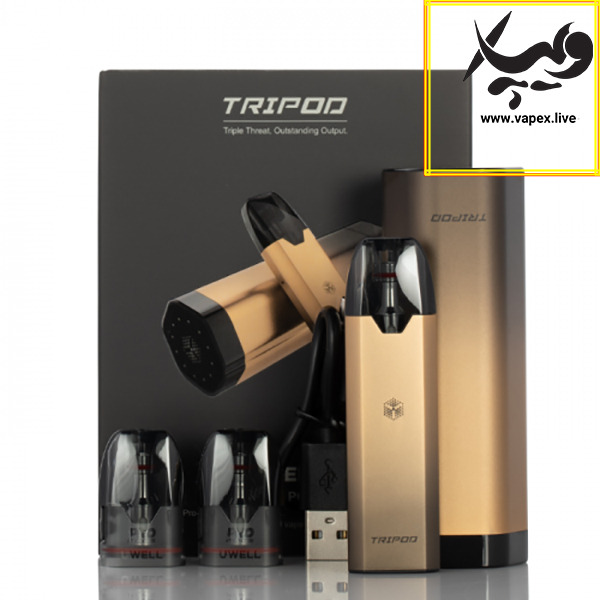 The UWELL Tripod Pod System is a slim, pocket‑friendly salt‑nicotine pod device with a 370mAh internal battery and a metal powerbank (1000mAh) that stores and charges the pod. It uses 2ml refillable PCTG cartridges with built‑in 1.2Ω coils, touch LED battery readout, USB‑C charging and magnetic cartridge connection , available at Vapex UAE for vapers in Dubai and the UAE.