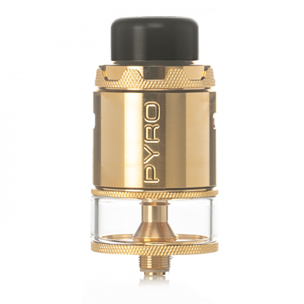 Practical touches make daily life easier. The top cap is knurled for grip so taking it off to access the deck is simple, even with slightly greasy hands. Refilling is handled through a large side juice port beneath the deck once the cap is removed. The Pyro IV also includes a removable flat pyrex, and the whole build is made from durable 304 stainless steel with a PEEK insulator. Dual airflow adjustment and a honeycomb airflow ring give you more control over vapour pressure and flavour character, while compatibility with an 810 drip tip and a standard 510 connector keeps it versatile.