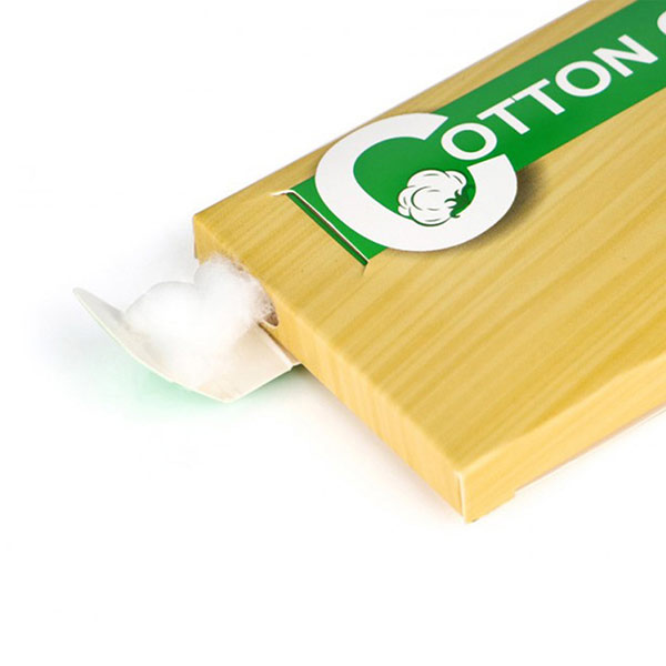 The Cotton Clouds roll is presented in a simple cardboard pack containing about 1.5 metres (5 feet) of cotton in one continuous strand. The cotton used is harvested from the cotton plant and processed through standard industrial cleaning,no chemical additives are used, and electricity is used in production. The main strand is cut to a 3 mm diameter, so you get a uniform thickness across the roll and don’t need to trim multiple pieces. That makes it an economical choice for regular coil building and wicking needs.
