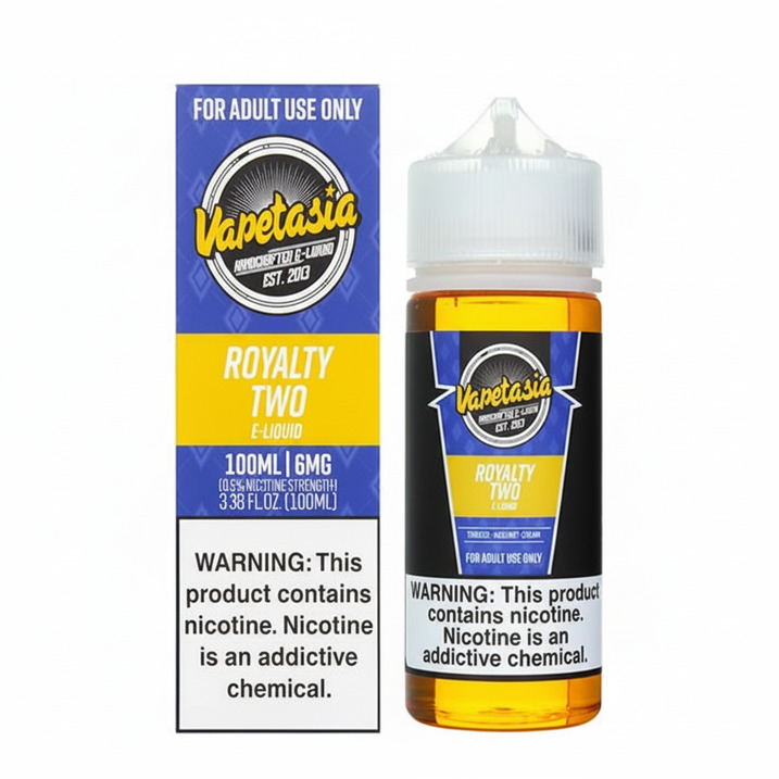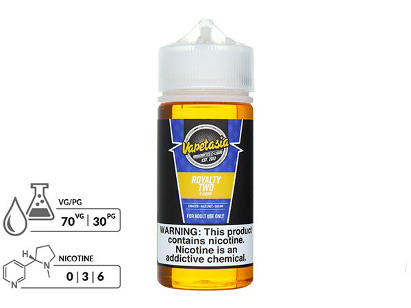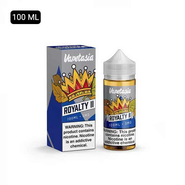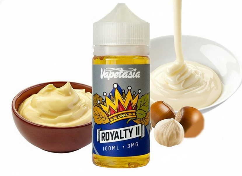 Vapetasia Royalty II 100ML E-Liquid brings together rich tobacco, smooth ice cream and toasted hazelnut in a 100ml bottle , a refined dessert-tobacco blend for vapers in Dubai and across the UAE.