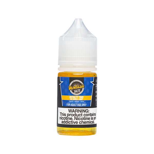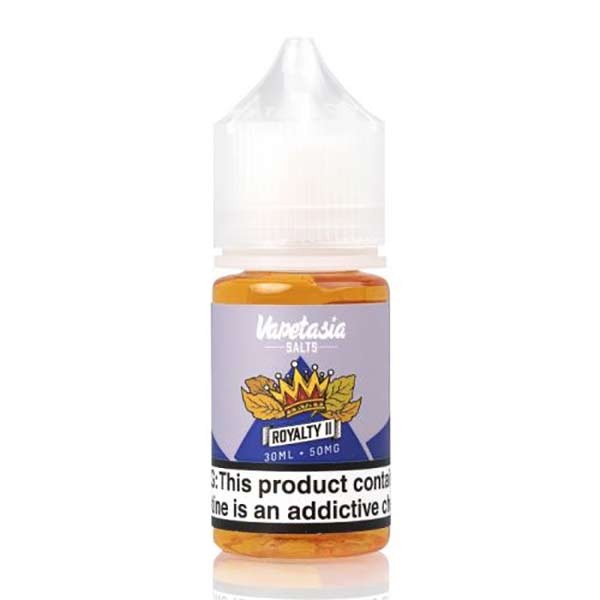 Vapetasia Royalty II Salt Nicotine is a creamy tobacco and hazelnut salt in a 30ml Chubby Gorilla bottle. Made in the USA with a 60/40 VG/PG ratio and offered in 24mg and 48mg strengths, it delivers a rich, balanced all-day vape you can enjoy in Dubai and across the UAE.